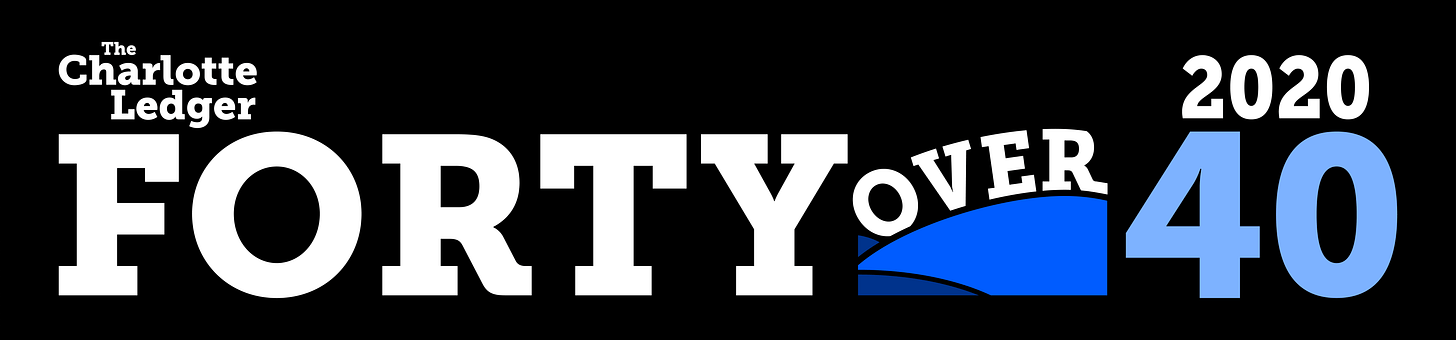 The Charlotte Ledger 40 Over 40 is run by The Charlotte Ledger, an award-winning e-newsletter providing original business news and analysis serving Charlotte. It is not affiliated with any other awards program, publication or events company.