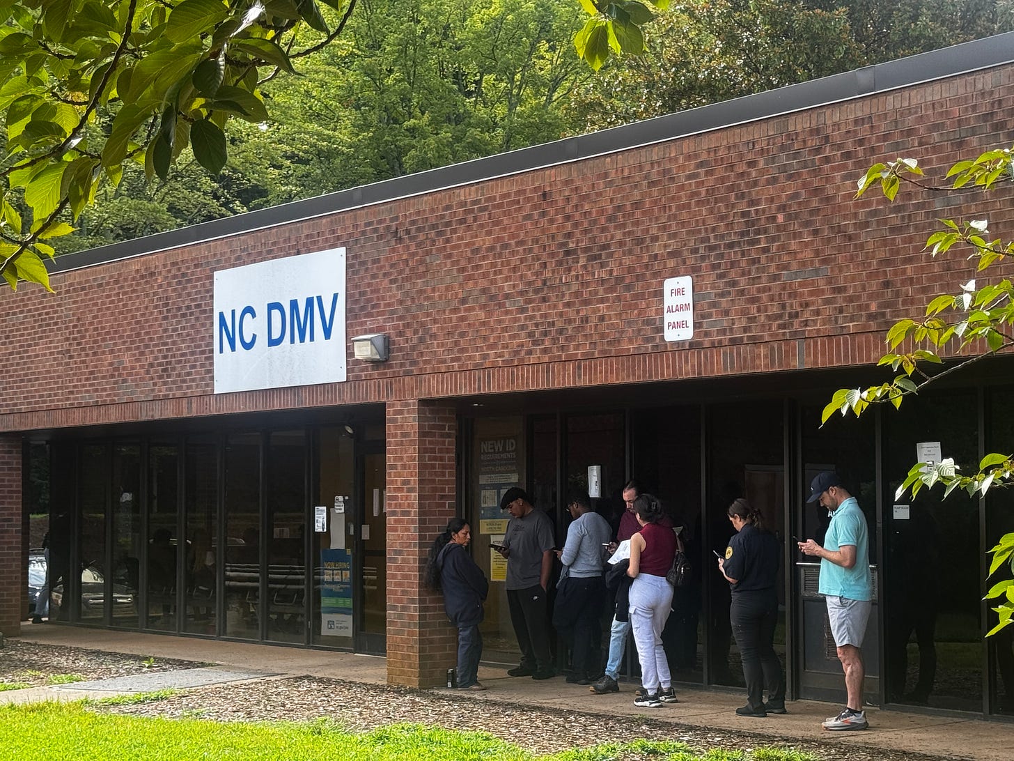 Miserable souls waiting at the N.C. Division of Motor Vehicles office in east Charlotte on Thursday morning. (Photo by Daniel Larlham Jr.)