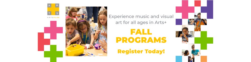 Today’s supporting sponsor is Arts +. Sign up for fall classes: Sing Play Move, Discovering Strings, Exploring Drawing and Painting, Arts+ Afterschool, Middle School Product Design 1.0, IDK Guitar, Collage 101, and so much more!