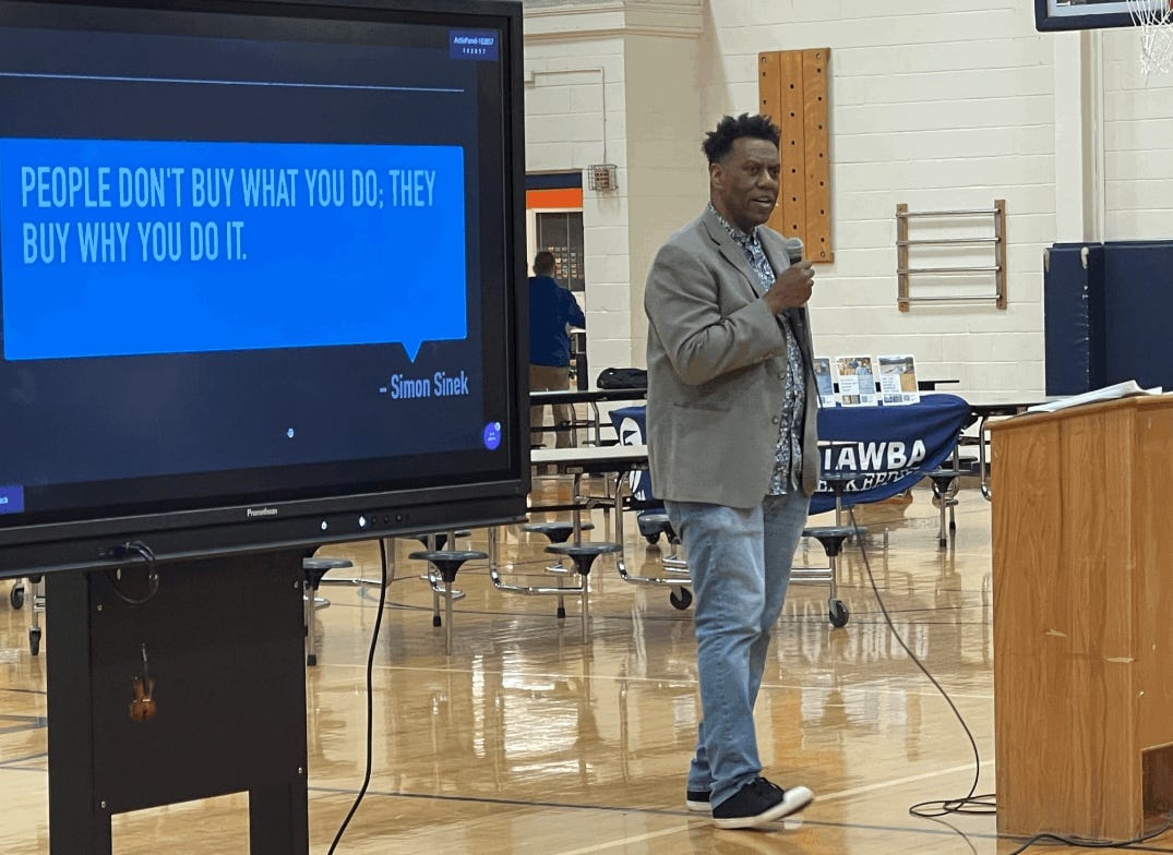 Charlotte Mecklenburg Planning Commission Chairman Douglas Welton (shown here) started his address to a Steele Creek residents association in April with a quote from leadership expert Simon Sinek. (Photo by county commissioner Susan Rodriguez-McDowell, courtesy of Douglas Welton)