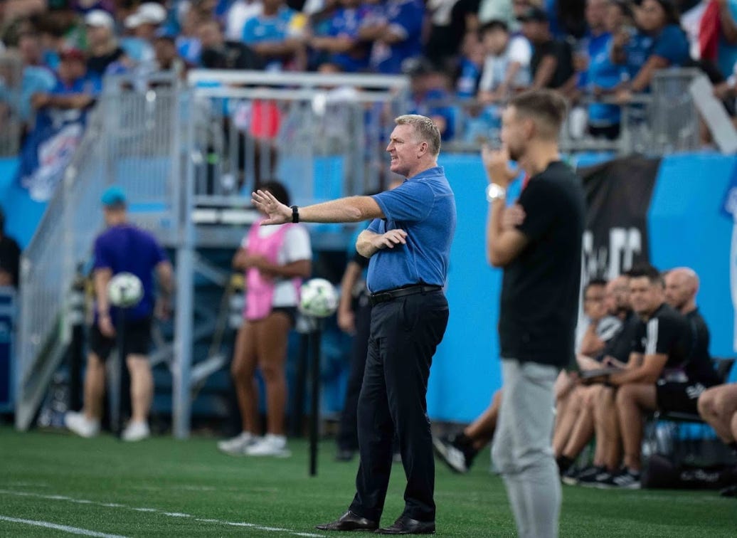 Dean Smith working the sidelines for Charlotte FC. (Photo by Kevin Young of The 5 and 2 Project.)
