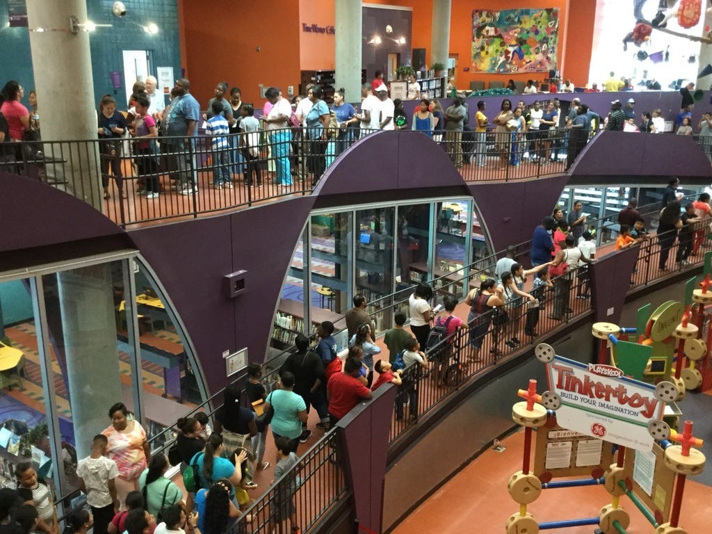 The Charlotte nonprofit E2D - Eliminate the Digital Divide handed out 1,000 free laptop computers at the ImaginOn library on Saturday. The line started as early as 4 a.m. for the giveaway, which started at 9 a.m. The charity refurbishes laptops and distributes them to residents of low-income households to ensure that students and adults have access to essential technology. About 2,000 people were turned away. “N.C. and Mecklenburgers need to know that the need remains real and critical,” said E2D president Pat Millen. (Photo courtesy of E2D - Eliminate the Digital Divide)