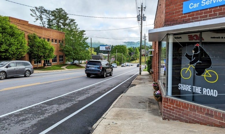 Asheville recently added bike lanes along a portion of Merrimon Avenue, but that’s just one piece of the city’s connected bike lane network that advocates would like to see grow. (Eric Barton for The Assembly)