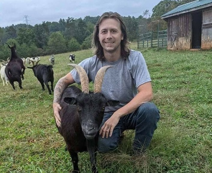 Jacob Trivette, owner of Carolina Goatscaping, has a 41-goat herd at his farm in Iredell County that he rents out for property owners who need to clear brush, vines and weeds. (Photo courtesy of Jacob Trivette)