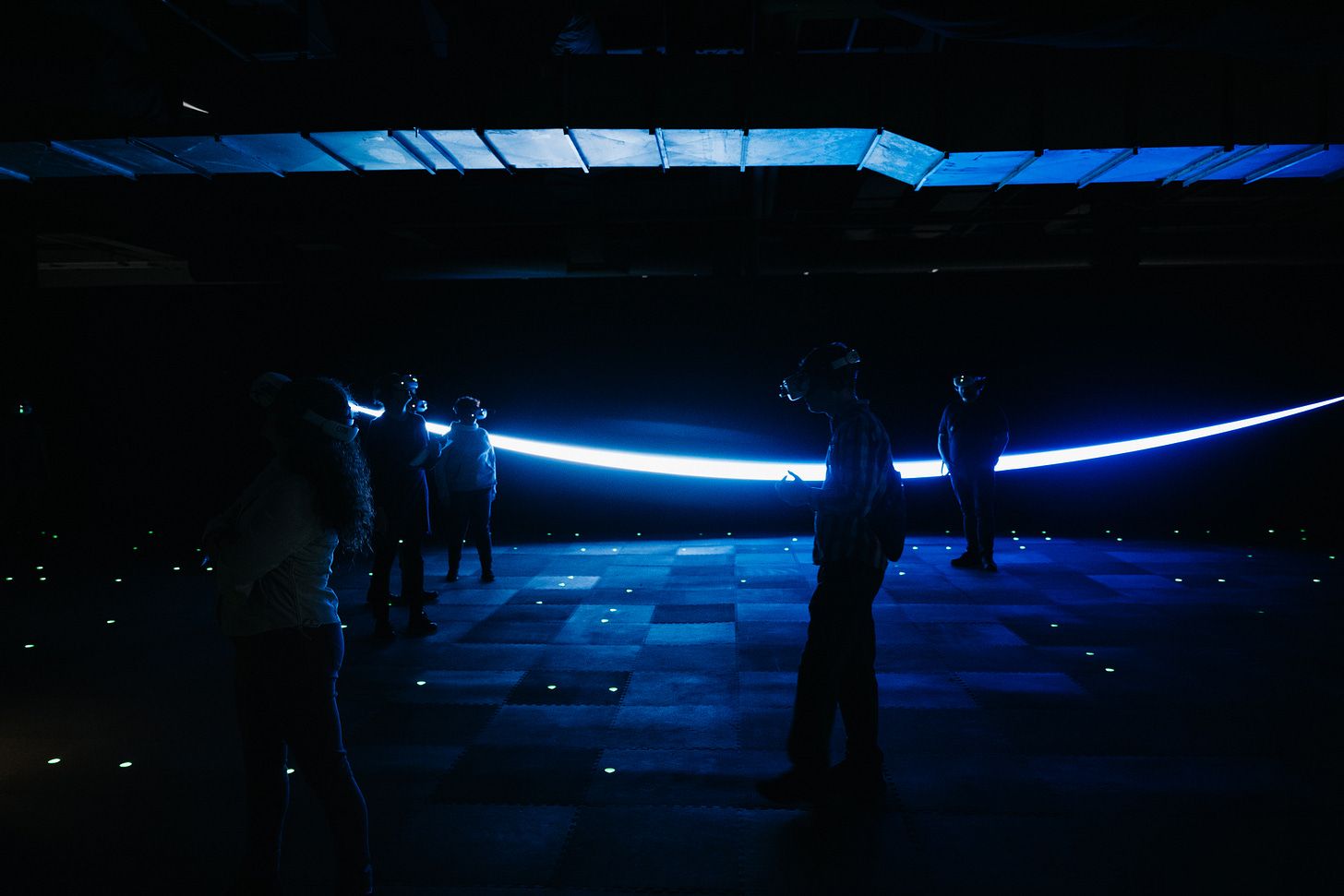 The 30-minute “Infinite” virtual reality portion of the experience takes place in two large rooms and a black-box anteroom, where you get a scene-setting light show before you’re handed the headset. These rooms sit along one side of the high-ceilinged, warehouse-like space Blumenthal Performing Arts took over from Charlotte Pipe and Foundry off West Morehead Street, near the Interstate 77 exit.