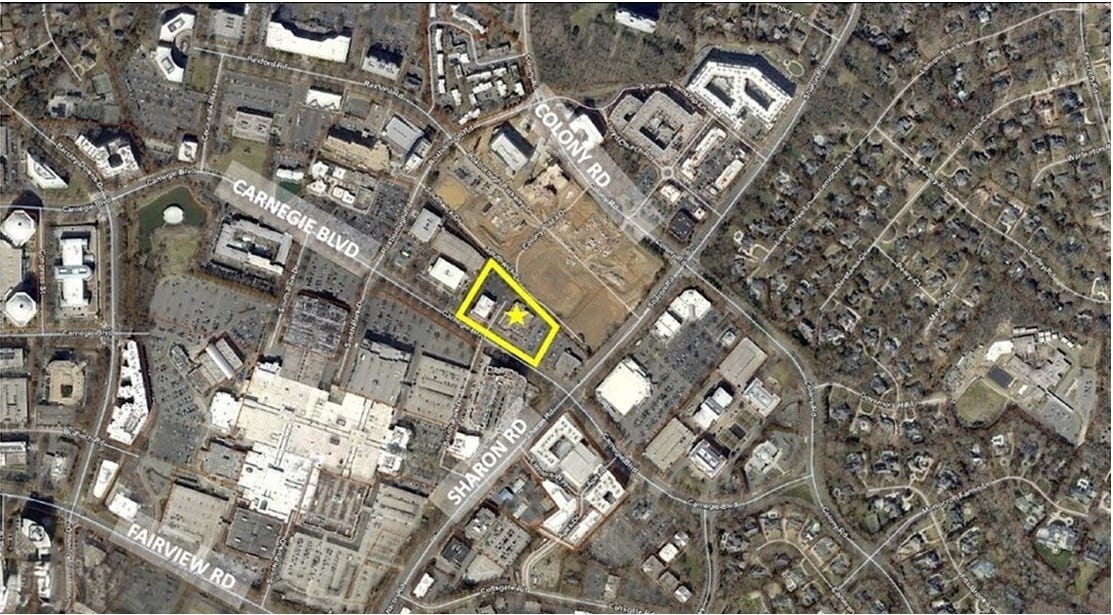 The 3.9-acre site consists of two parcels on Carnegie Boulevard in SouthPark. (Image courtesy of Hines)