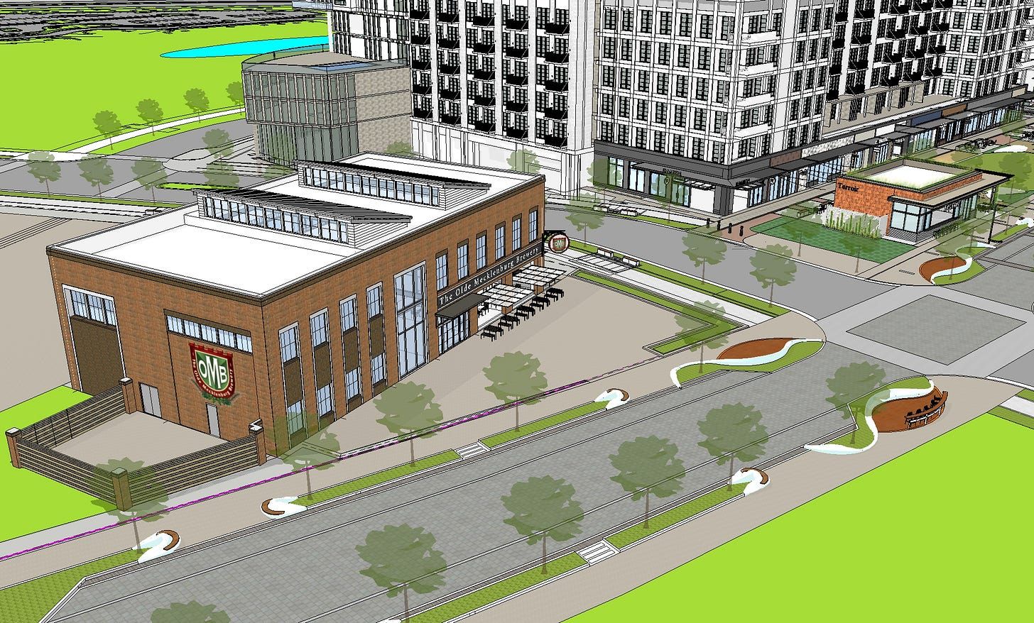Beer time in Ballantyne: OMB plans to open location at Ballantyne Reimagined next year that will be “the largest brewery concept in south Charlotte.” (Renderings courtesy of Northwood Investors)