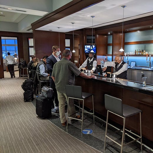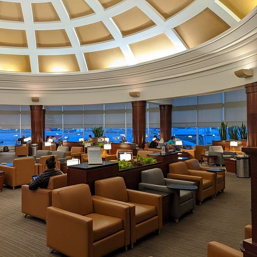 Those hunting for their usual array of snacks, made-to-order avocado toast and free wine and beer are going to have to make do with the much smaller Admirals Club on Terminal B. American renovated that one in 2018-19, and its decor is lighter and more modern than the one on C/D, which had dark wood and more of a 1990s vibe.