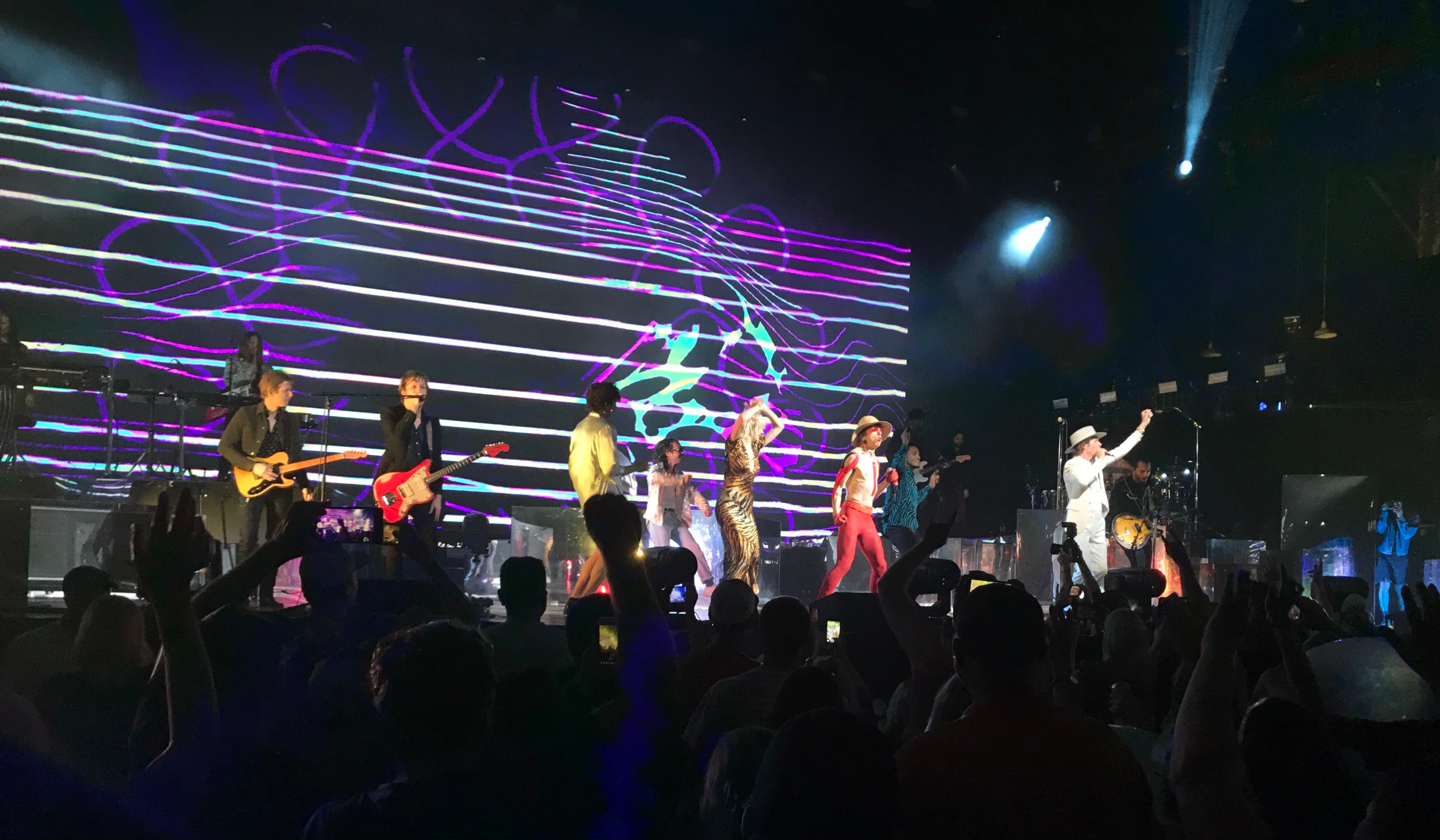 Members of Cage the Elephant, Beck, and Spoon performing an encore at PNC Pavilion in 2019. (Jay Ahuja photo)