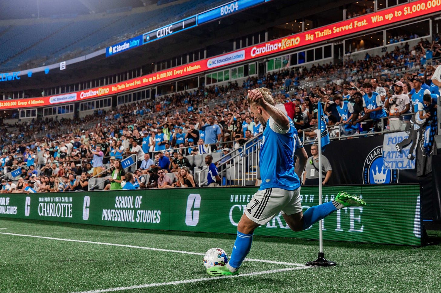 Jozwiak taking a corner kick Saturday vs. Orlando (Photo courtesy of Charlotte FC.)