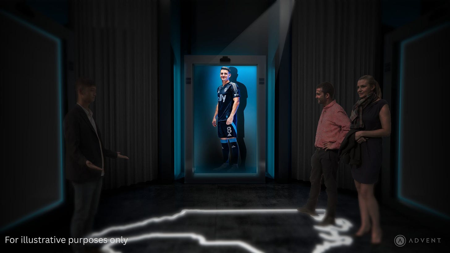 No, that’s not Ashley Westwood, that’s a hologram of Westwood. Charlotte FC will be using three dimensional images like this one to illustrate what the renovated Bank of America stadium will look like as it sells suite and season packages for the years to come. The $800 million renovation is targeted for completion in 2030. (Illustration courtesy of Tepper Sports and Entertainment.)
