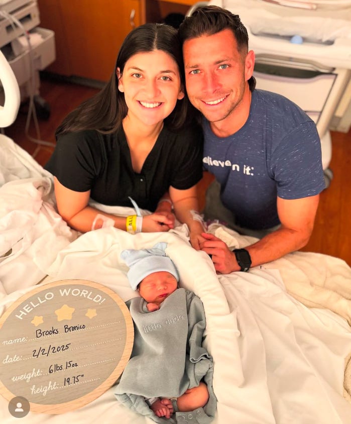 Brandt Bronico and his wife Rebecca introduce their son Brooks Beatty Bronico, weighing in at 6 pounds, 15 ounces. (Photo from Bronico’s Instagram account.)
