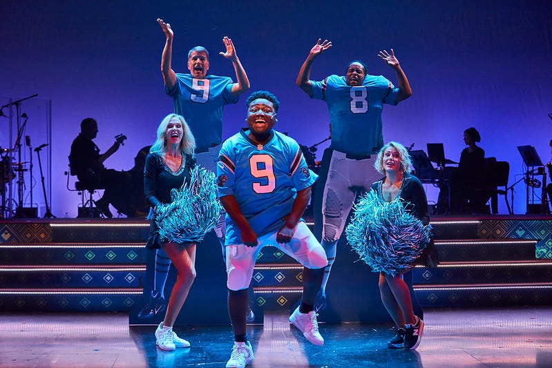 Two things seemed different to me this year. First, three of the songs were advocacy-based. “Our City Needs Another Train” begged legislators to back the transit bill in play; “I’m Still Standing,” featuring ebullient Griffin Digsby, encouraged the Panthers to stick with embattled Bryce Young as their quarterback; and “I’m Not Joinin’,” with Olivia Edge in powerful voice as the spirit of Greenland, demanded we remember that this land is not a candidate for U.S. statehood. These were funny enough but not satirical, except for images in Kahn’s PowerPoints.