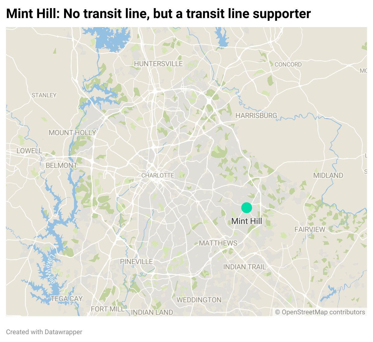 If you look at a map of the proposed transit expansions under the new transit plan, you’ll see that none of the proposed bus or rail lines runs anywhere near Mint Hill.