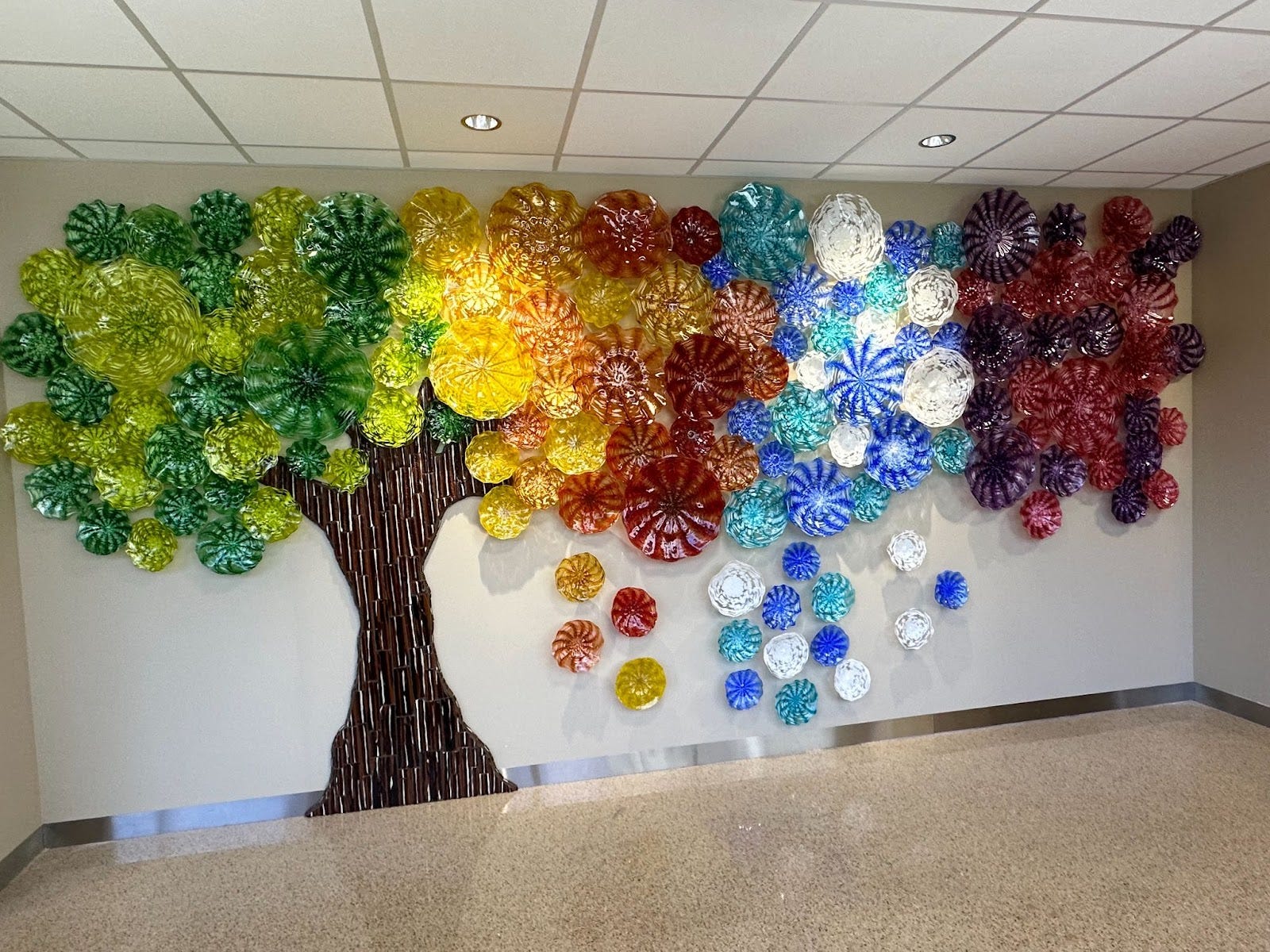 “Seasons of Life” was unveiled last month at the Levine Cancer Institute, created and installed by Pfeifer and his Hot Glass Alley team. (Photo courtesy of Jacob Pfeifer)