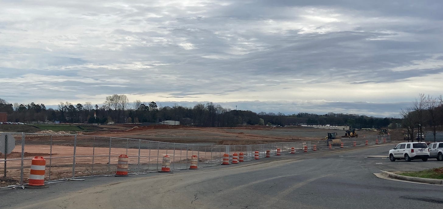 Construction crews have done preliminary site work, but nothing is coming out of the ground yet. Several construction workers, taking a break from their construction equipment, were eating lunch there Thursday afternoon when we dropped by.