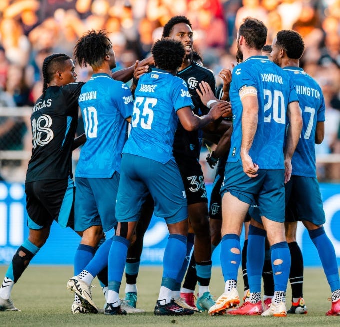 Emotions flared Tuesday night in Cary, N.C. for U.S. Open Cup action. (Photo courtesy of Charlotte FC’s Twitter feed.)