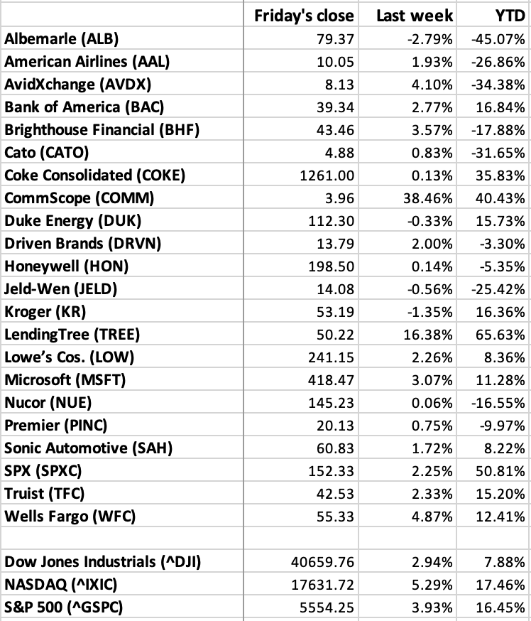 Unless you are a day trader, checking your stocks daily is unhealthy. So how about weekly? How local stocks of note fared last week (through Friday’s close), and year to date: