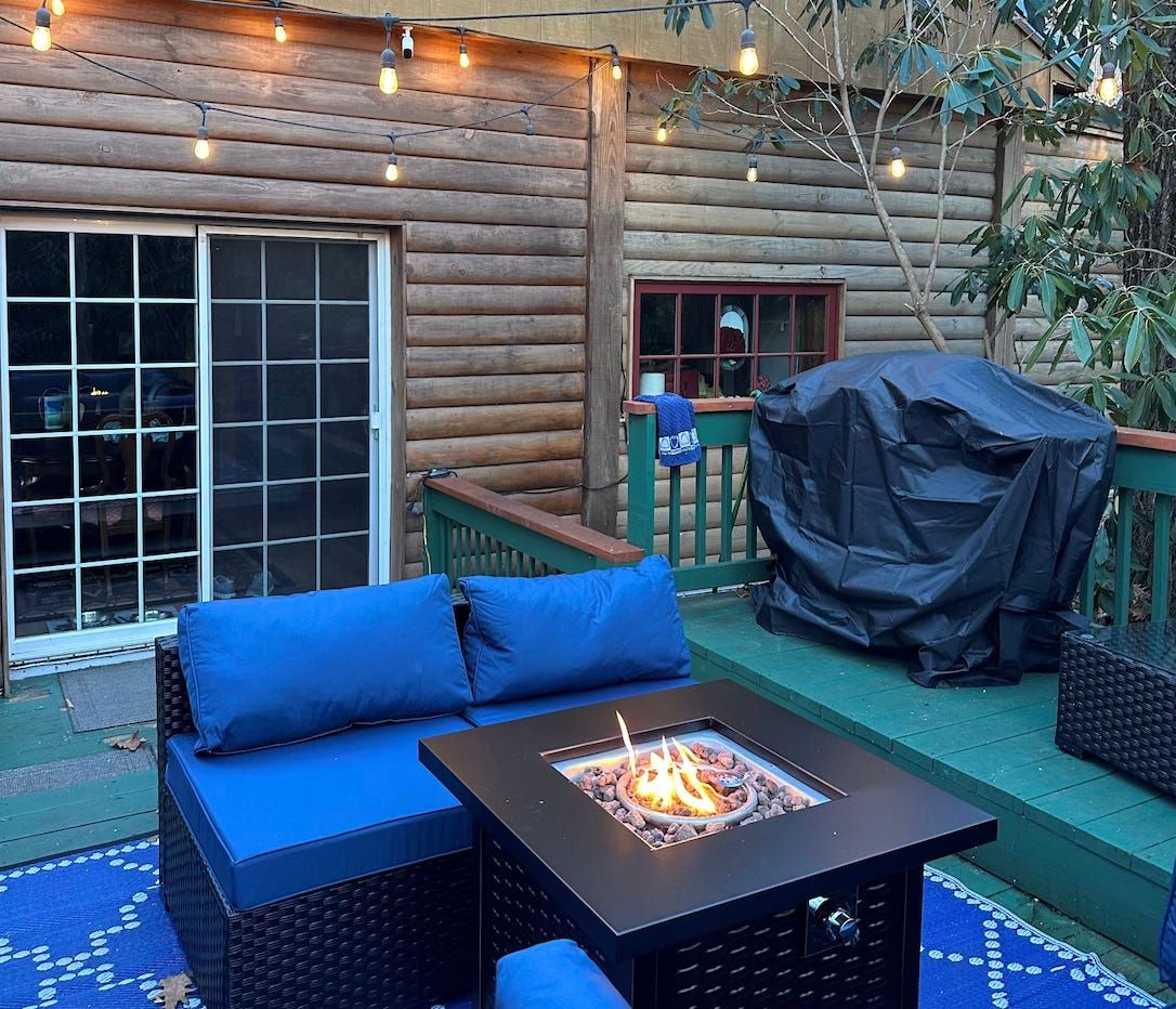 Once, a hot tub sat where this outdoor seating and fire table is today. It had to go once the host learned guests used it for snorkeling and rinsing off after hikes. (Colleen Brannan photo)