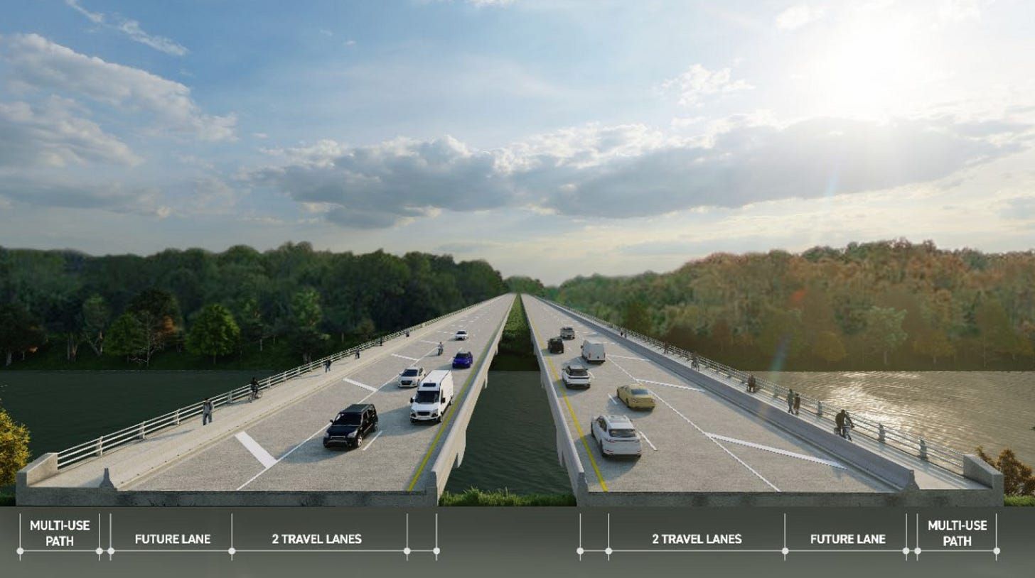 Some local leaders say a 4-lane road would ease traffic on both sides of the river; Critics say it would lead to sprawl