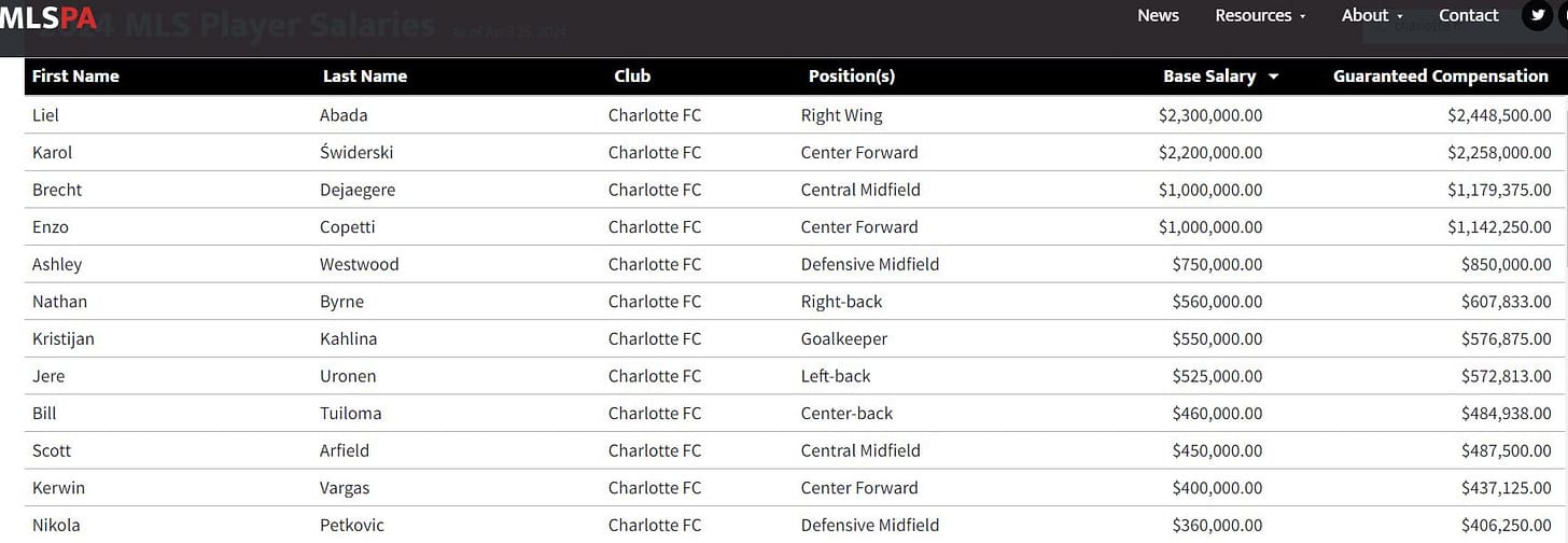 MLSPA’s listing of the highest-paid players for Charlotte FC signed since April 25.