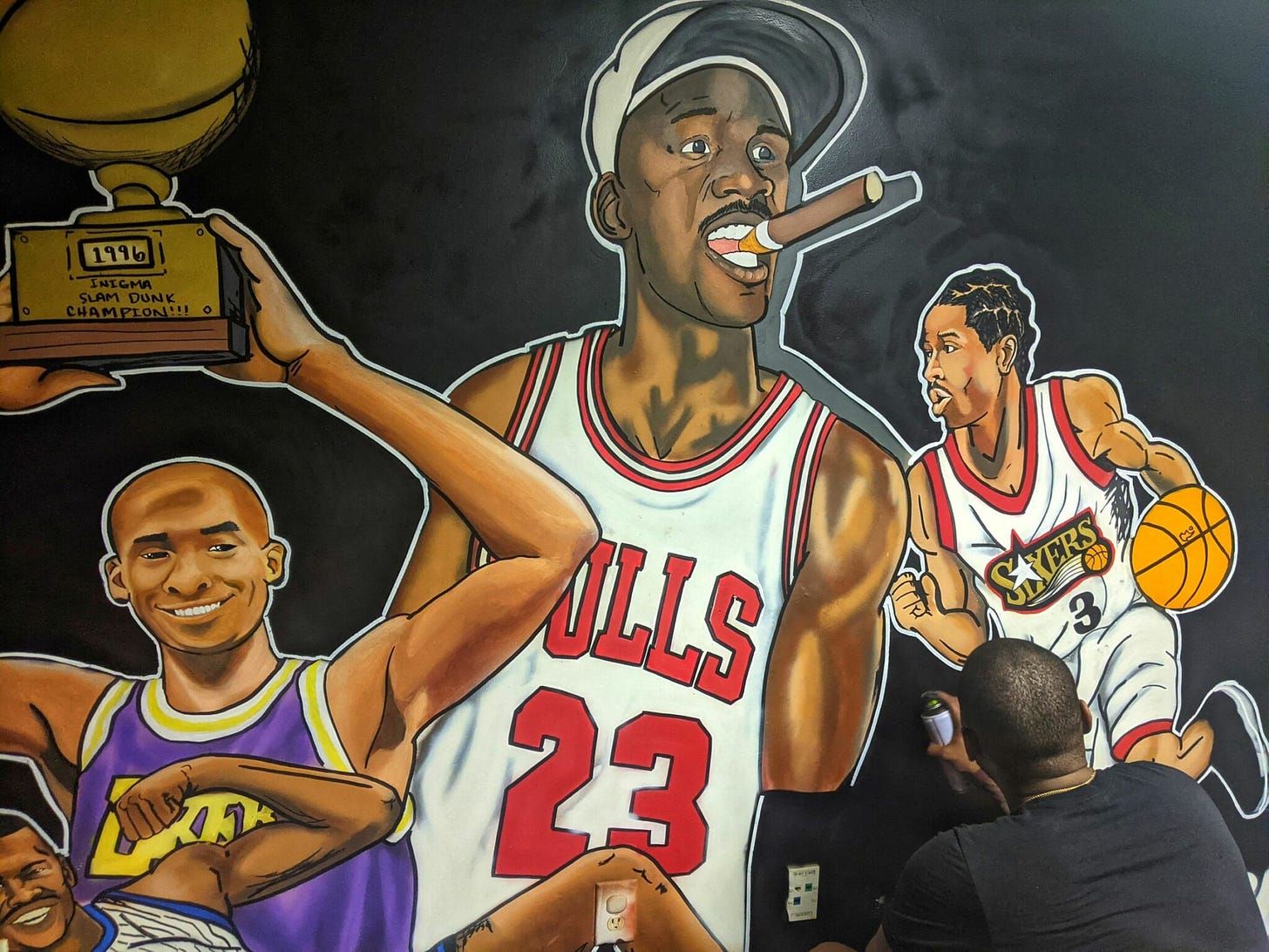 Artist Inigma working on a sports mural in the Home of the ’90s Museum. (Photo: QCity Metro)