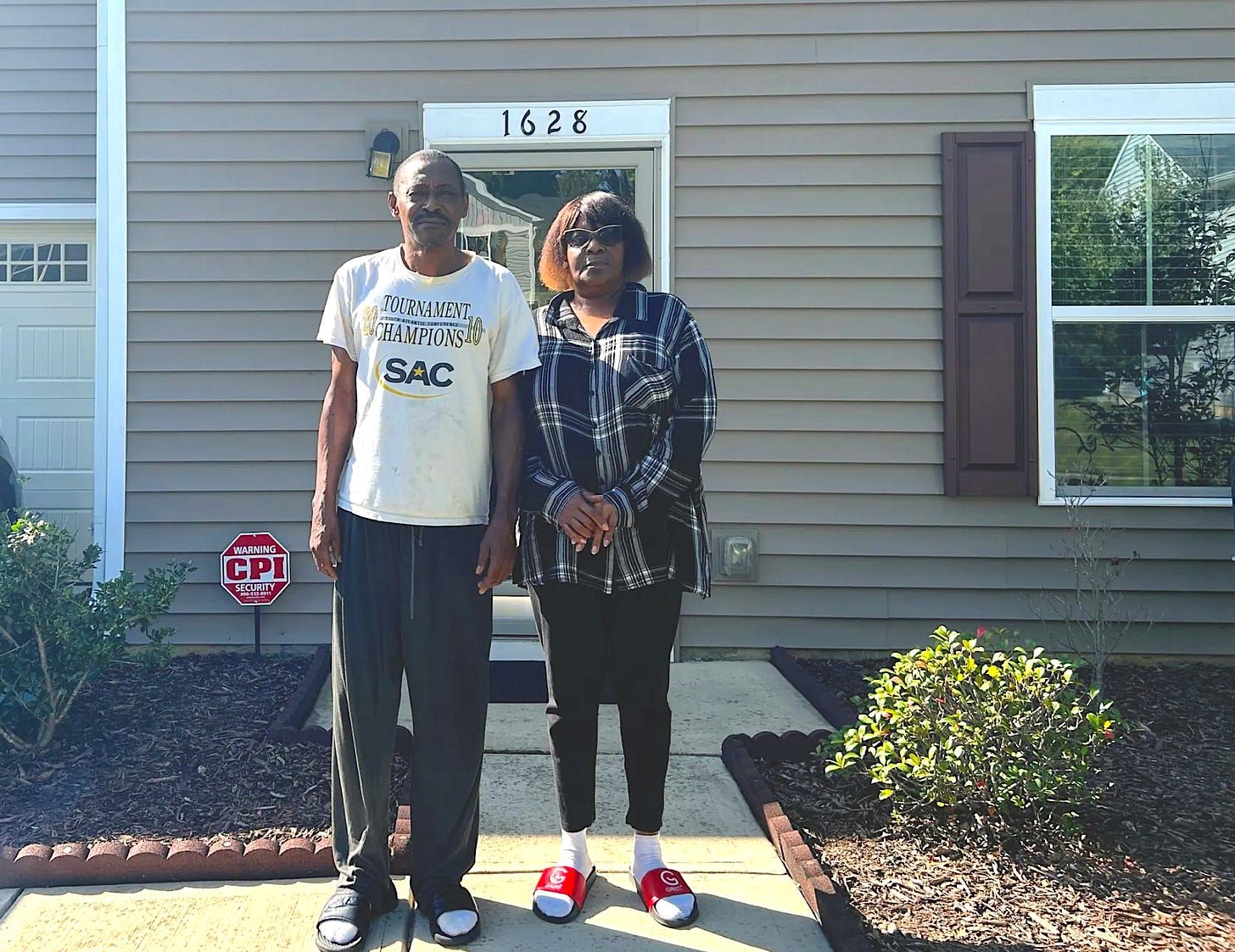 Lionel and Brenda White stand outside their Charlotte home, which is now free of a $50,529 lien related to unpaid medical debt. Atrium Health and four other N.C. hospitals are lifting thousands of similar judgments. (Photo by Michelle Crouch/N.C. Health News)