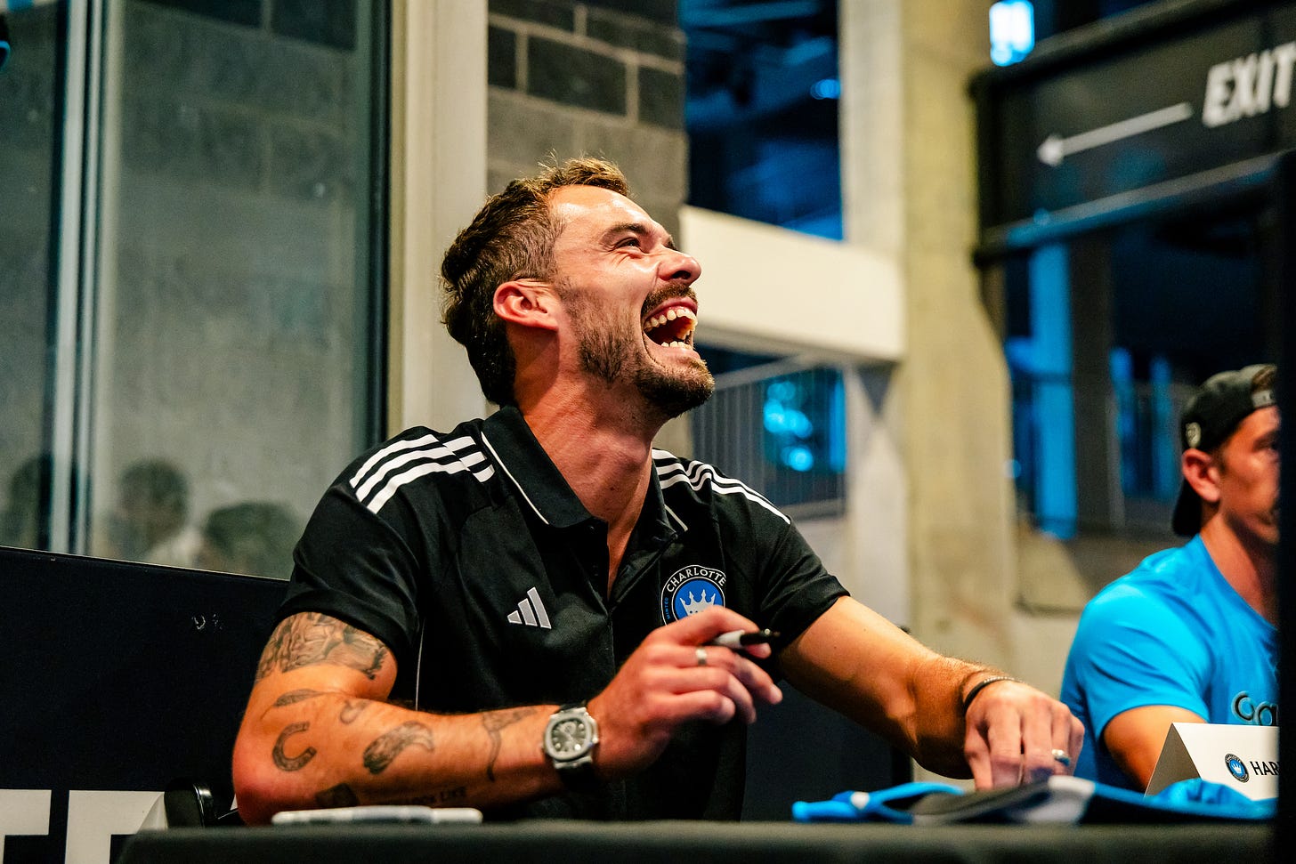 Toffolo engaging with fans at “Meet the Team” night at Bank of America Stadium. (Photo courtesy of Charlotte FC.)