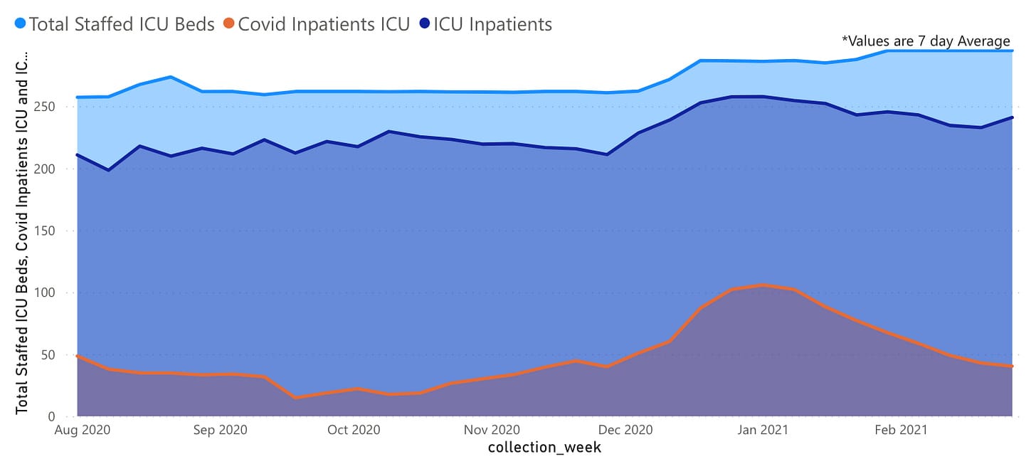 Since the peak, the number of patients in Mecklenburg ICUs has fallen from 106 to 40 in late February, the data shows. The most recent data show 44 available ICU beds.