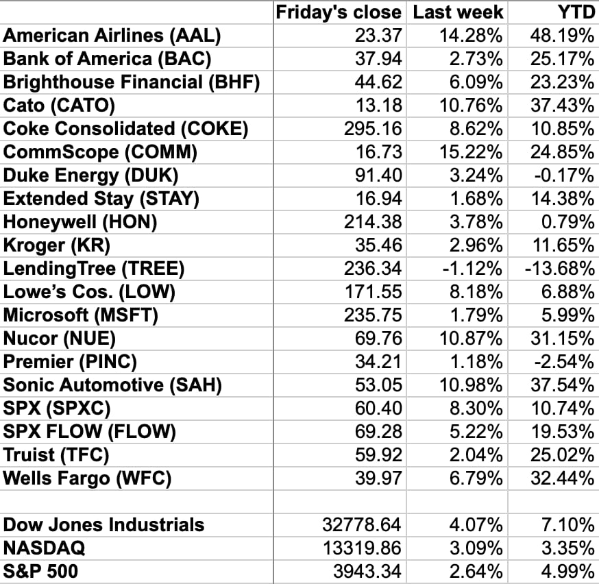 Unless you are a day trader, checking your stocks daily is unhealthy. So how about weekly? How local stocks of note fared last week (through Friday’s close), and year to date: