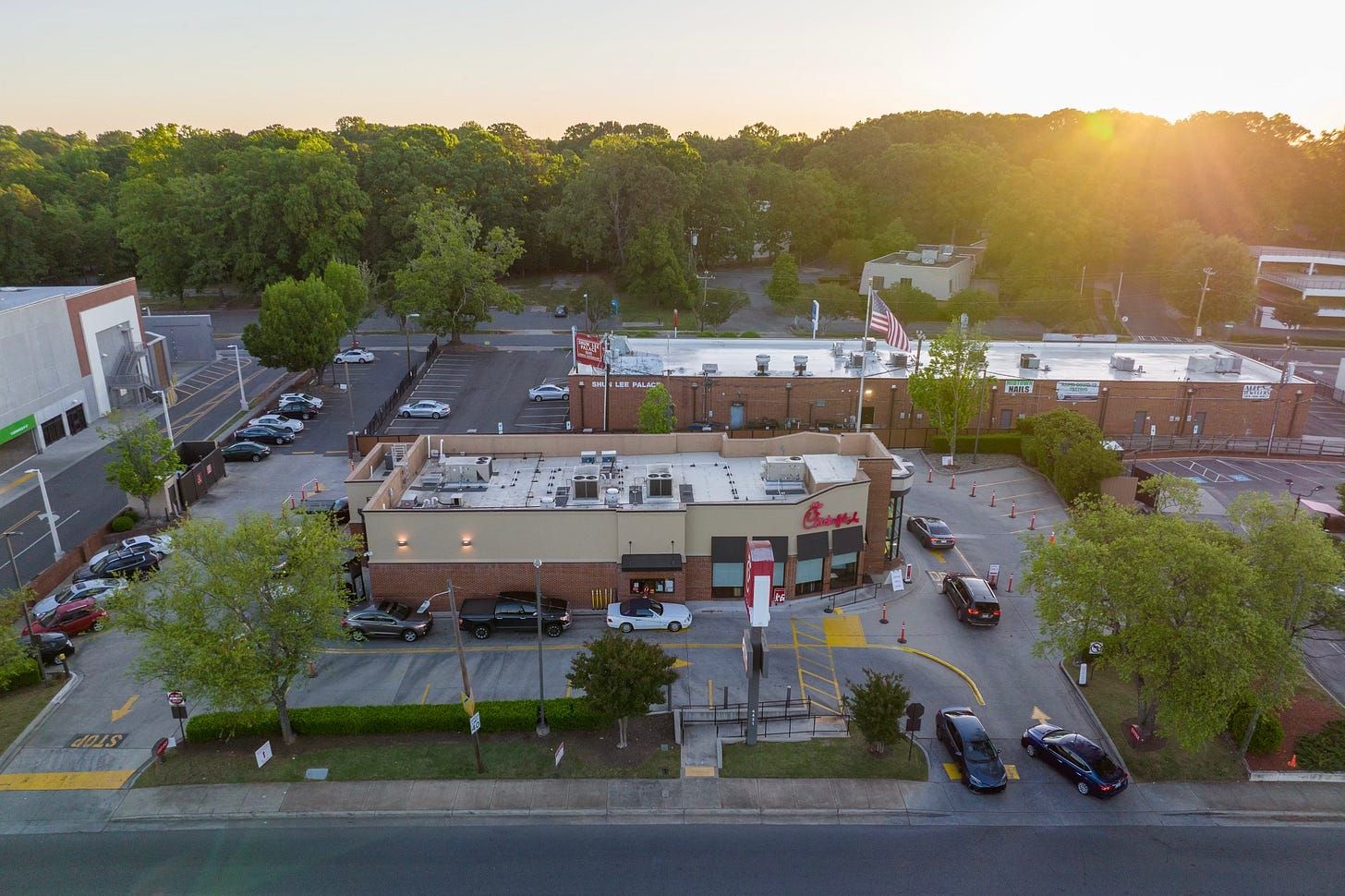Cars encircle the Chick-fil-A on Randolph Road in Cotswold from sunrise to sunset, and traffic often backs up into the street. (Photo by Kevin Young/The 5 and 2 Project)