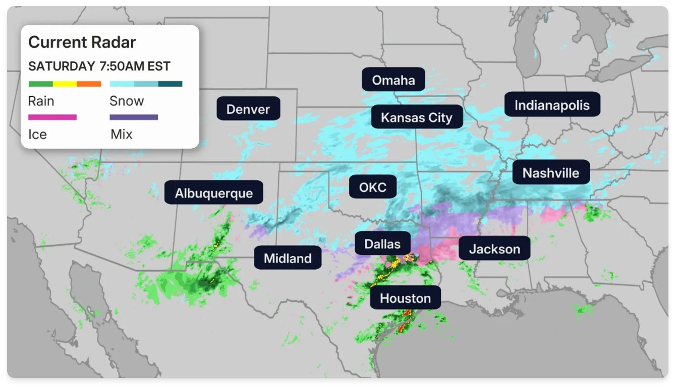 ➡️ How much ice? The Storm Prediction Center says an additional 0.25 and 0.5 inches of ice could accumulate. We’ve already seen about 0.10 inches, which would put totals in the 0.35 and 0.6 range. (For context: around 0.25 inches is when scattered power outages typically begin. At 0.5 inches, outages become widespread and tree damage increases.)