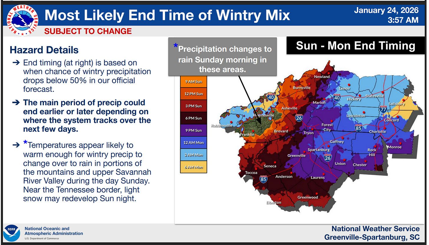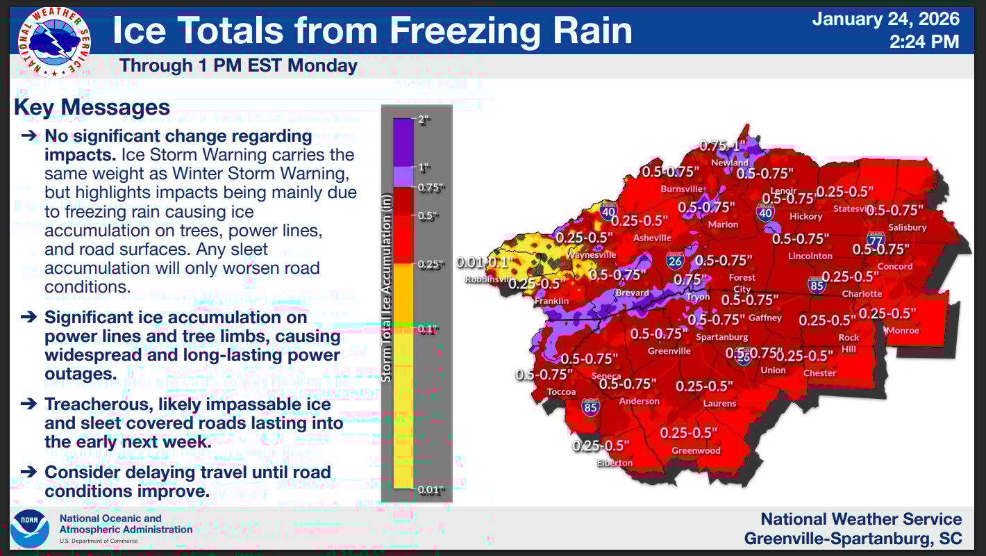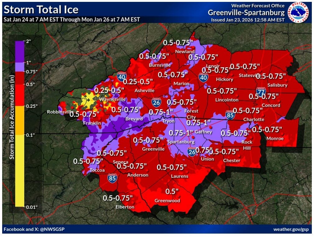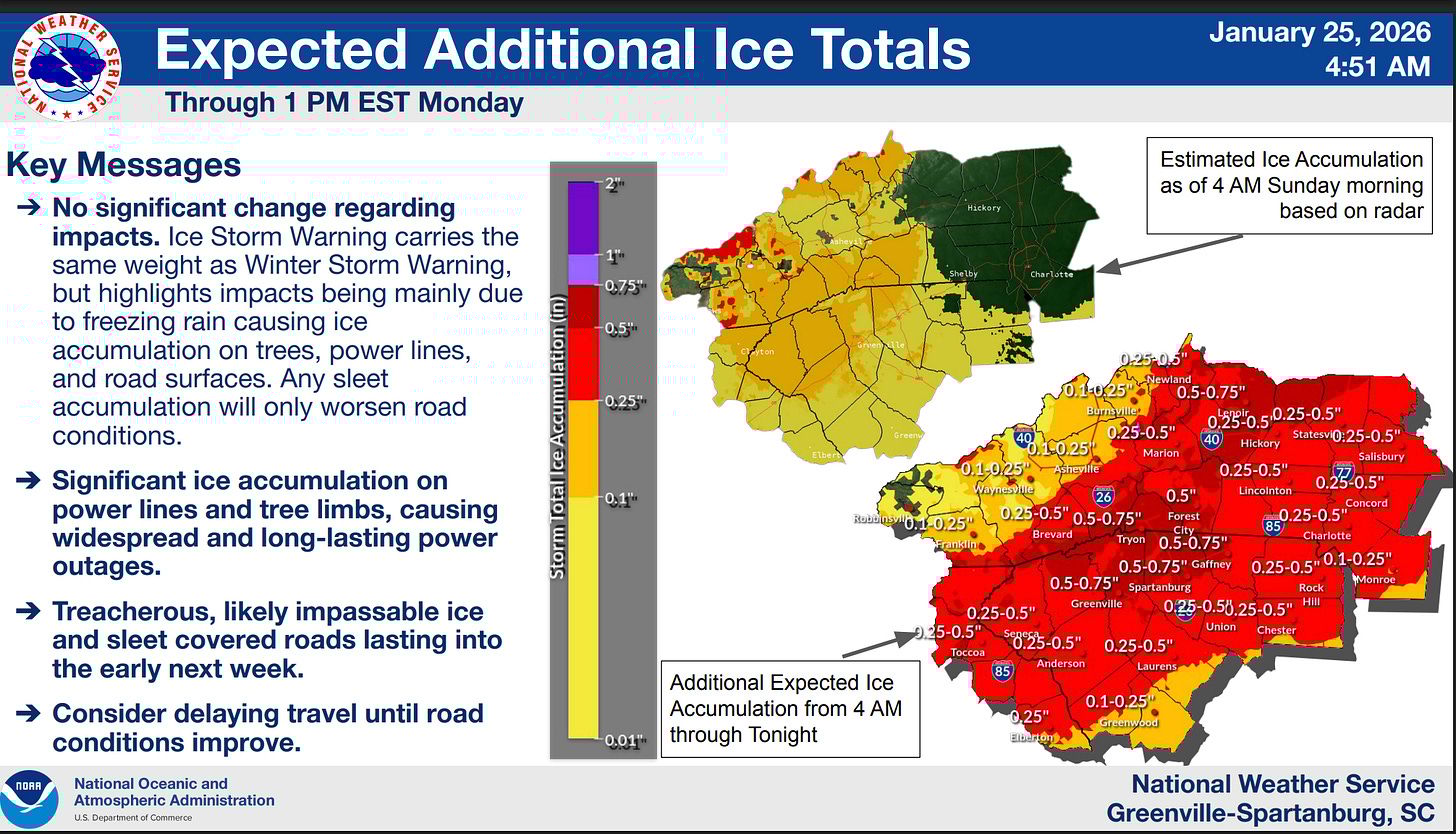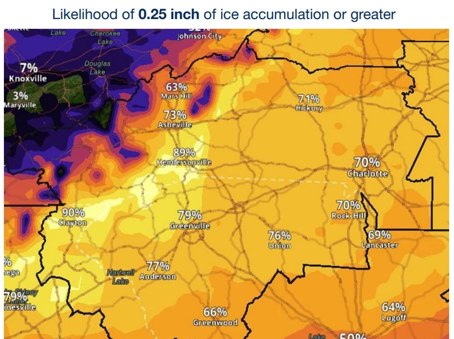 If you’re looking for bright spots, no forecast is 100% certain. And the ice is predicted to be worse west of Charlotte, like in Spartanburg and Brevard and along the N.C.-S.C. line.