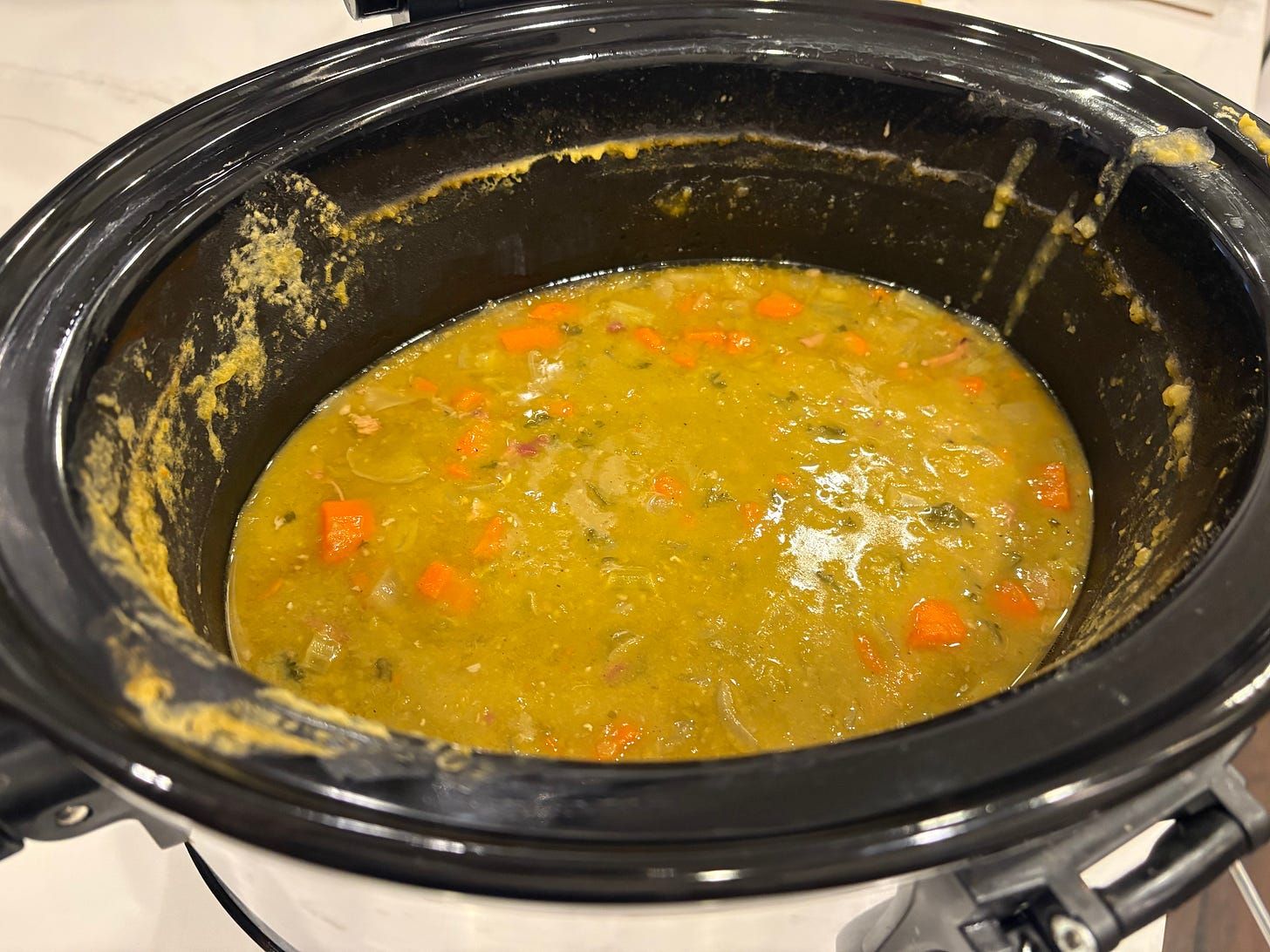 We’ve had some homemade split pea soup in the crockpot all afternoon. Take a look: