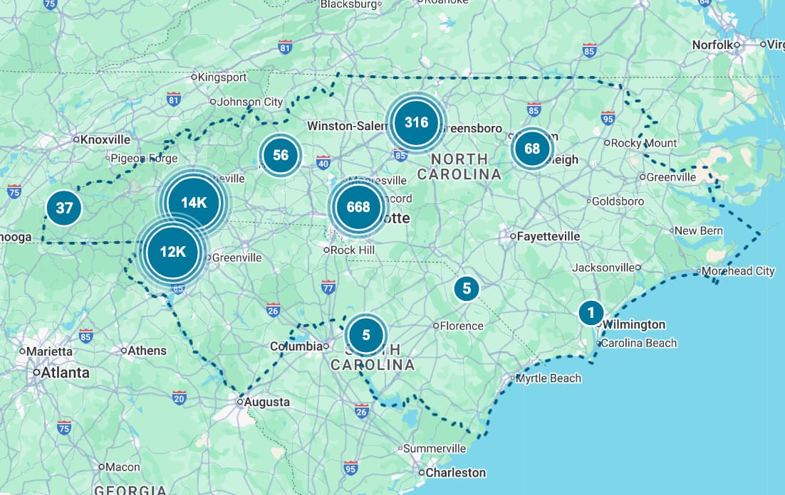 Now, though, those numbers are up — though nowhere close to the number of outages in Western N.C. and Upstate S.C.