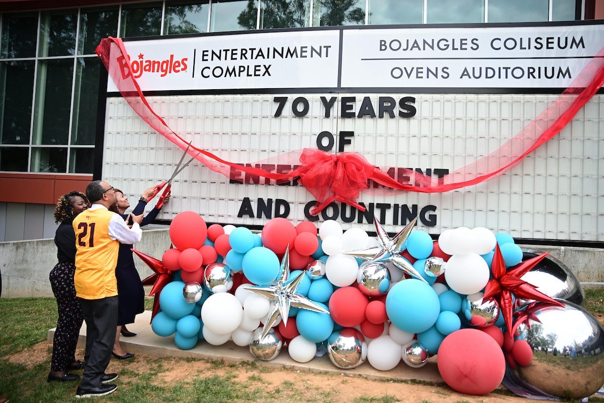 The Bojangles Entertainment Complex — also known as the BOplex — held a ceremony last week celebrating the new location of its historic marquee. It also marked the complex’s 70th anniversary. The marquee used to be on the Independence Boulevard side of the Bojangles Coliseum/Ovens Auditorium complex, but was removed to make way for a digital sign in 2023. One of the most famous shots of it was from 1972, when it showcased the impressive range of events at the coliseum and auditorium: “Billy Graham Crusade,” “Wrestling,” “Elvis Presley” and “Ice Hockey.” (Photo courtesy of Charlotte Regional Visitors Authority)