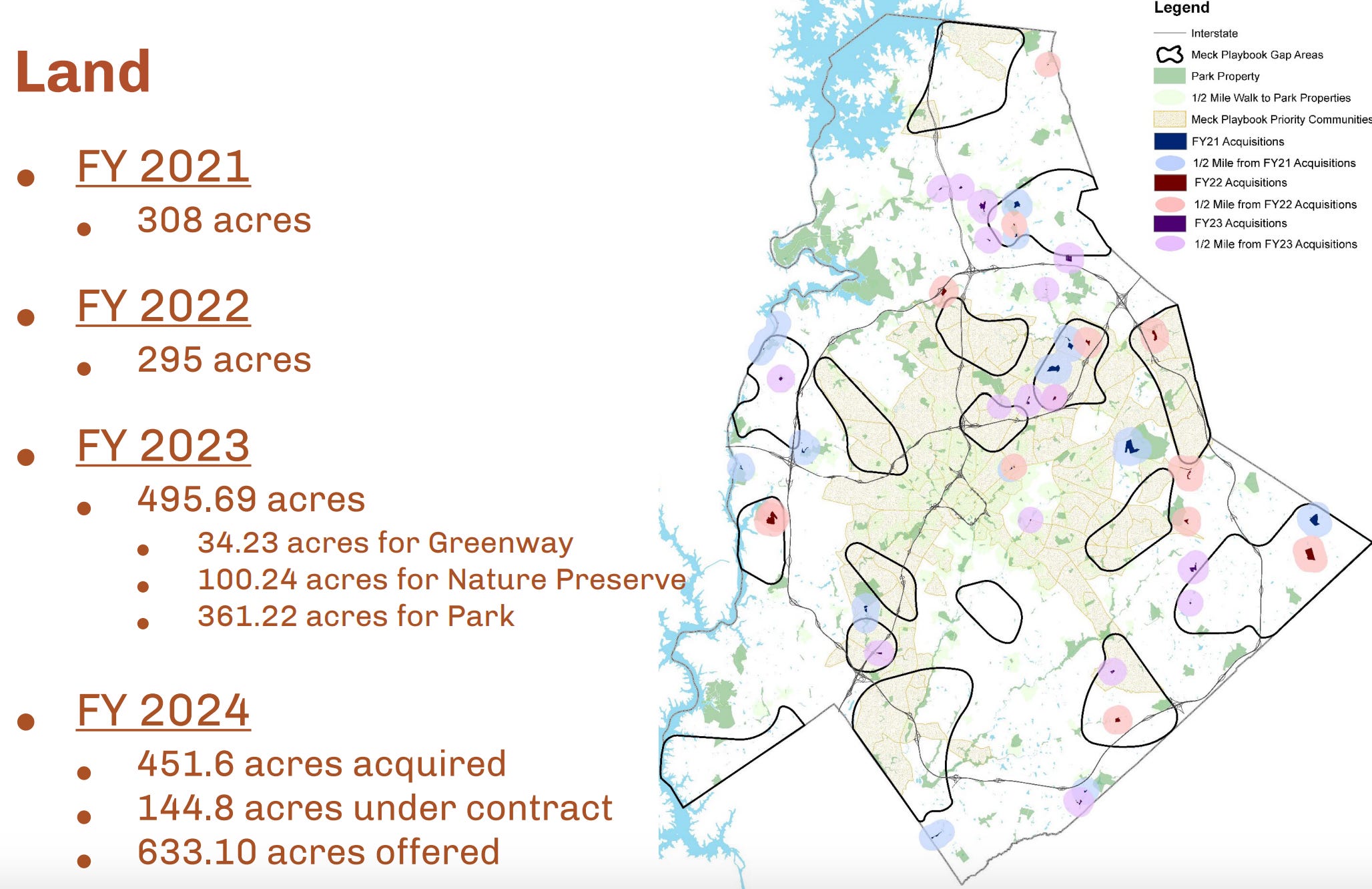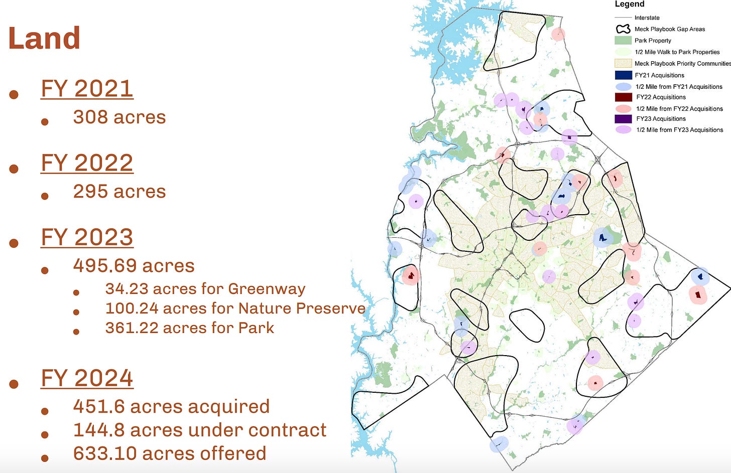 The stepped-up purchases of land for parks come as Mecklenburg has consistently scored low on national surveys that examine the number and locations of parks compared with population.