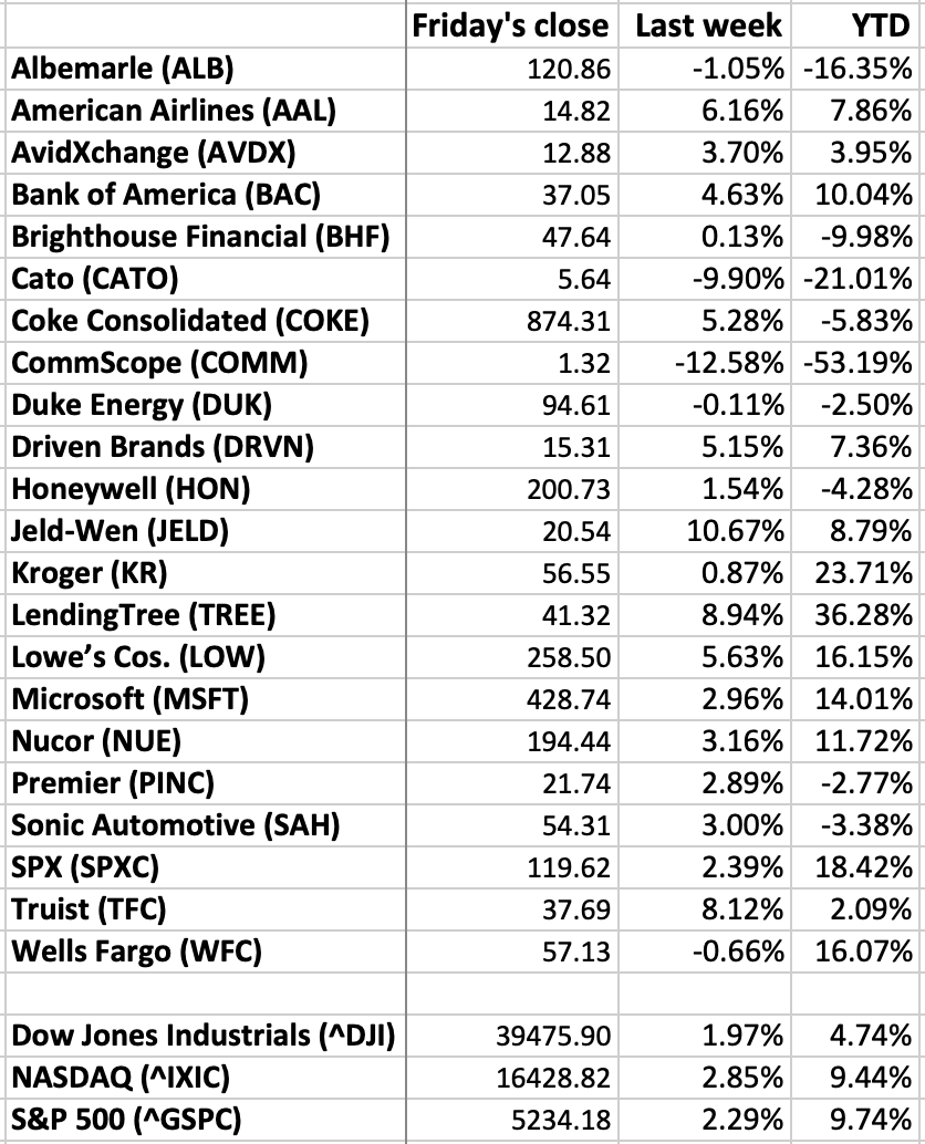 Unless you are a day trader, checking your stocks daily is unhealthy. So how about weekly? How local stocks of note fared last week (through Friday’s close), and year to date: