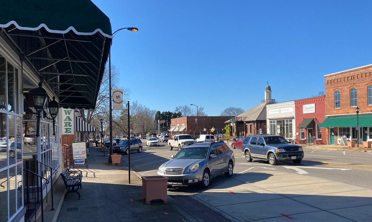 Downtown Matthews, the town of 31,000 in southern Mecklenburg, which has been the only municipality opposed to Charlotte’s transit plan. (Ledger file photo)