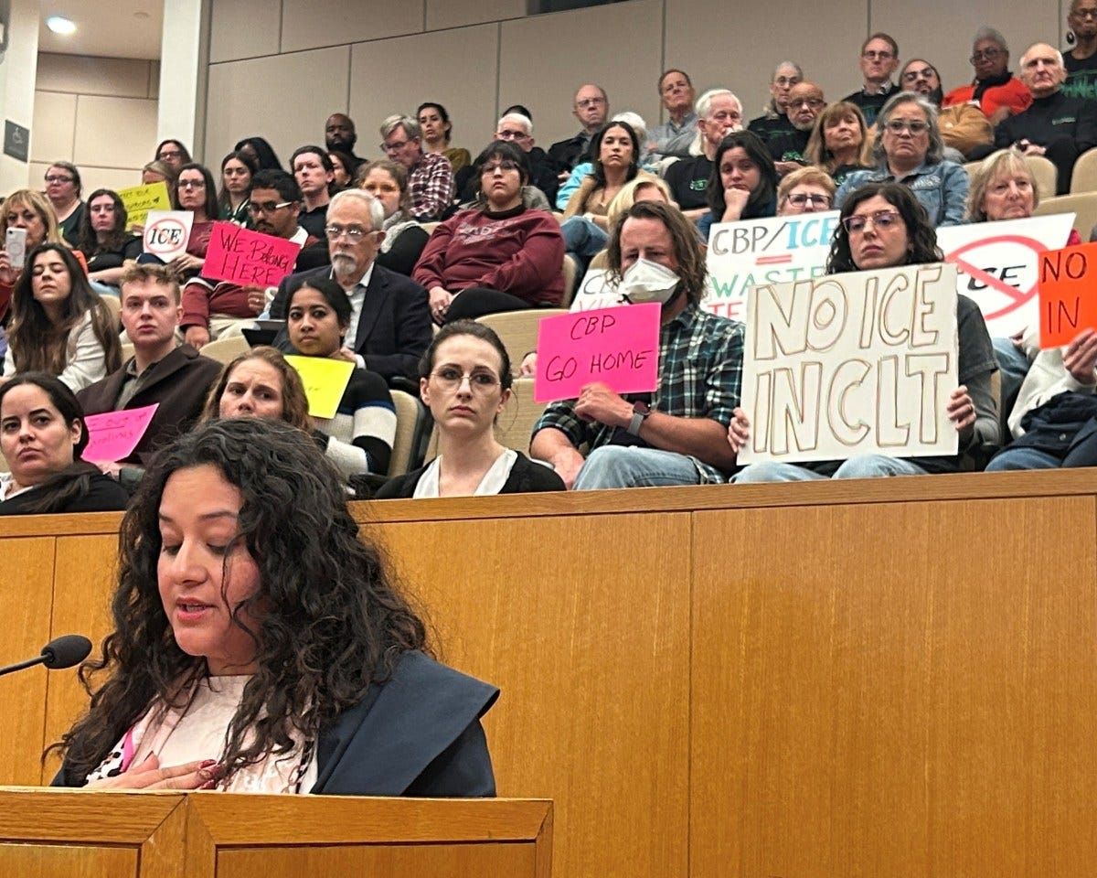 At the Mecklenburg County board of commissioners meeting on Tuesday, speakers protesting the Border Patrol operation described residents afraid to leave their homes to take out the trash, let alone stand in line at a pharmacy. They said cancer patients were skipping treatments, children were having panic attacks and adults already haunted by memories of la migra in their home countries were being re-traumatized.