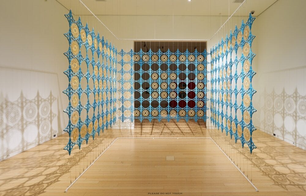 Texas artist Eliza Au’s “Sanctuary” is a meditative space made from three large stoneware lattice screens. (Courtesy of Eliza Au)