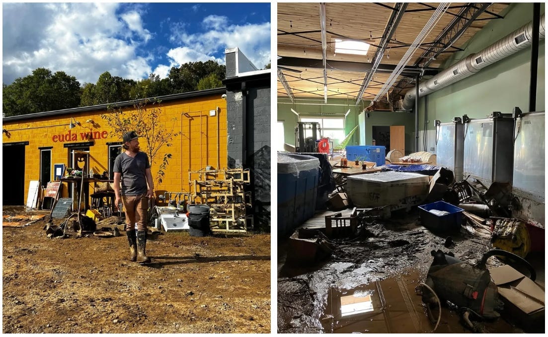 Owner Michael McGeary during cleanup efforts at Euda Wine in Old Fort, which suffered an estimated $450,000 to $500,000 in damages and lost revenue. “The winery just got absolutely wrecked, but this is just a business and we will rebuild,” the McGearys wrote in an Instagram post. (Photo from @eudawine Instagram)