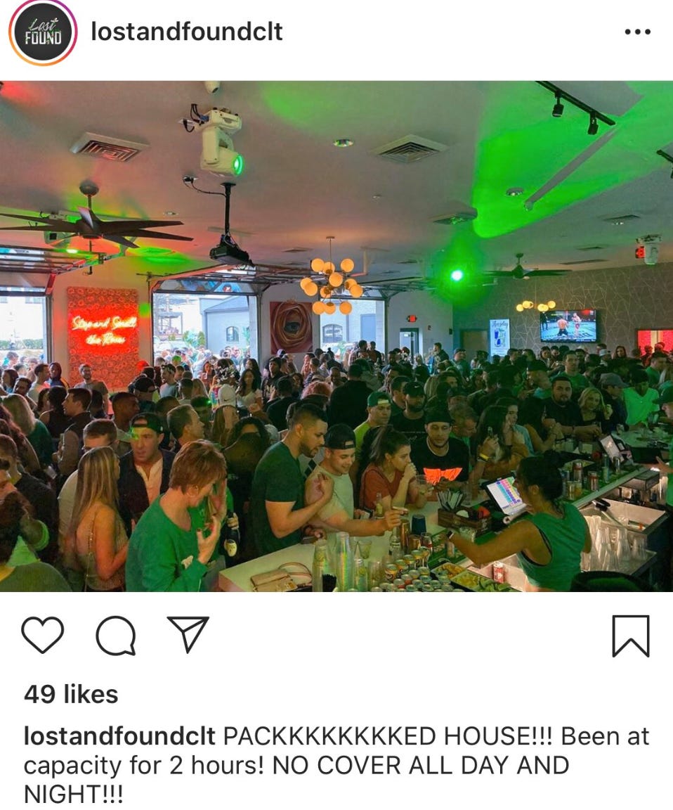 … and the bar Lost & Found posted a photo on Instagram of wall-to-wall drinkers celebrating St. Patrick’s Day (photo since deleted):
