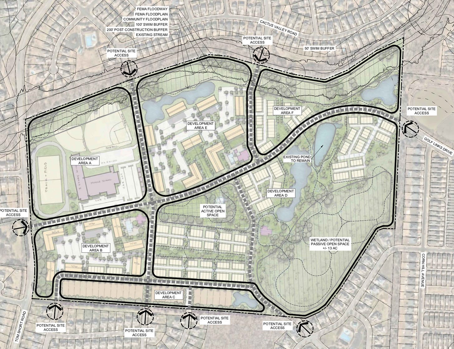 New middle school + 917 homes: Childress Klein and Charlotte-Mecklenburg Schools filed documents detailing plans for a “mixed-use residential community with large walkable open space.” It would include 682 apartments, 211 townhomes, 24 single-family houses and a new CMS middle school. It’s on mostly vacant land along Tom Short Road with access from Golf Links Drive west of Providence Road.