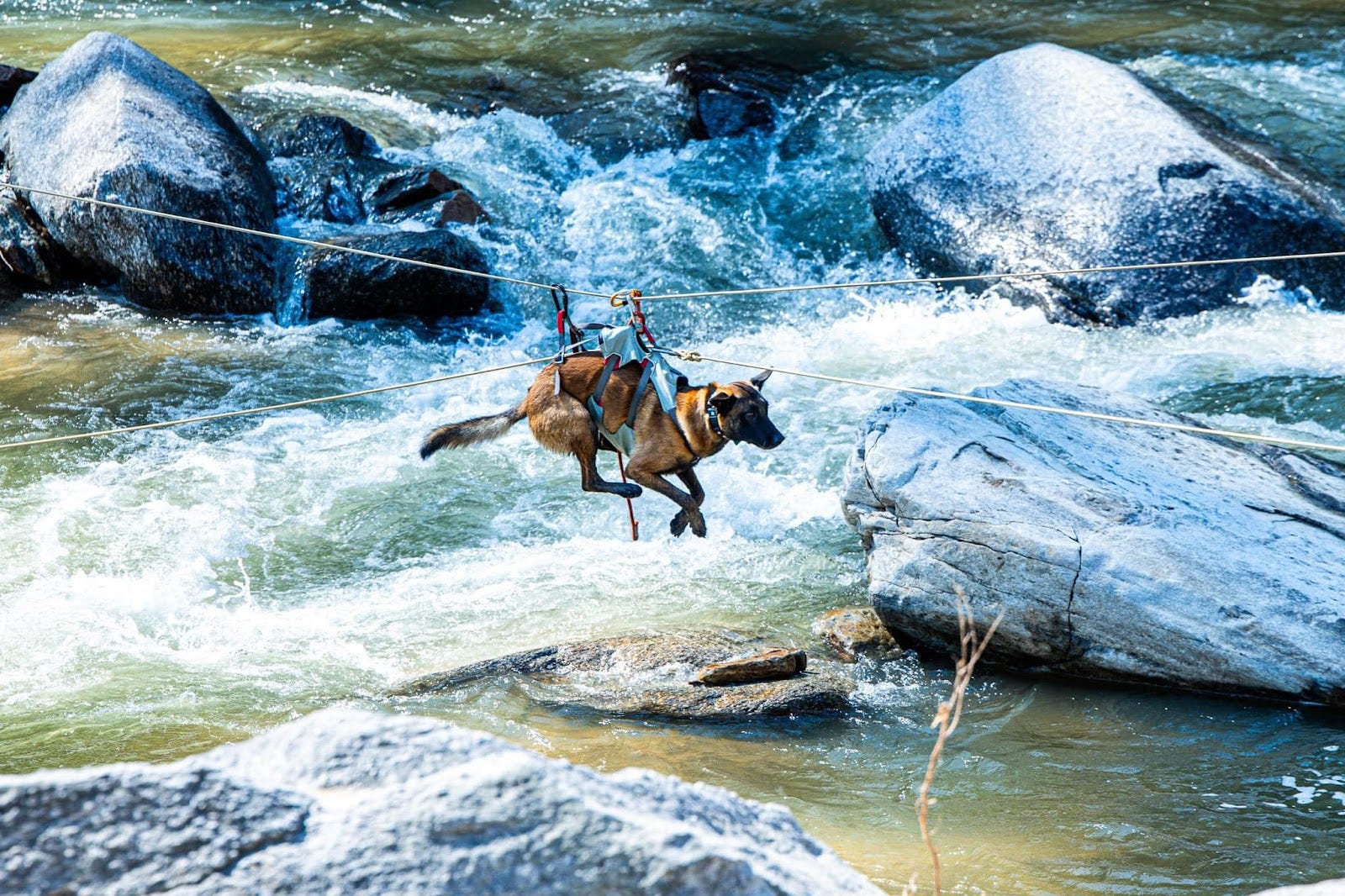 K9 Kyra is one of the dozens of canines on the ground completing rescue and recovery missions. Kyra worked with the Virginia Department of Emergency Management and Henderson County Rescue Squad in Bat Cave. (Photo courtesy of Rey Castillo Jr.)