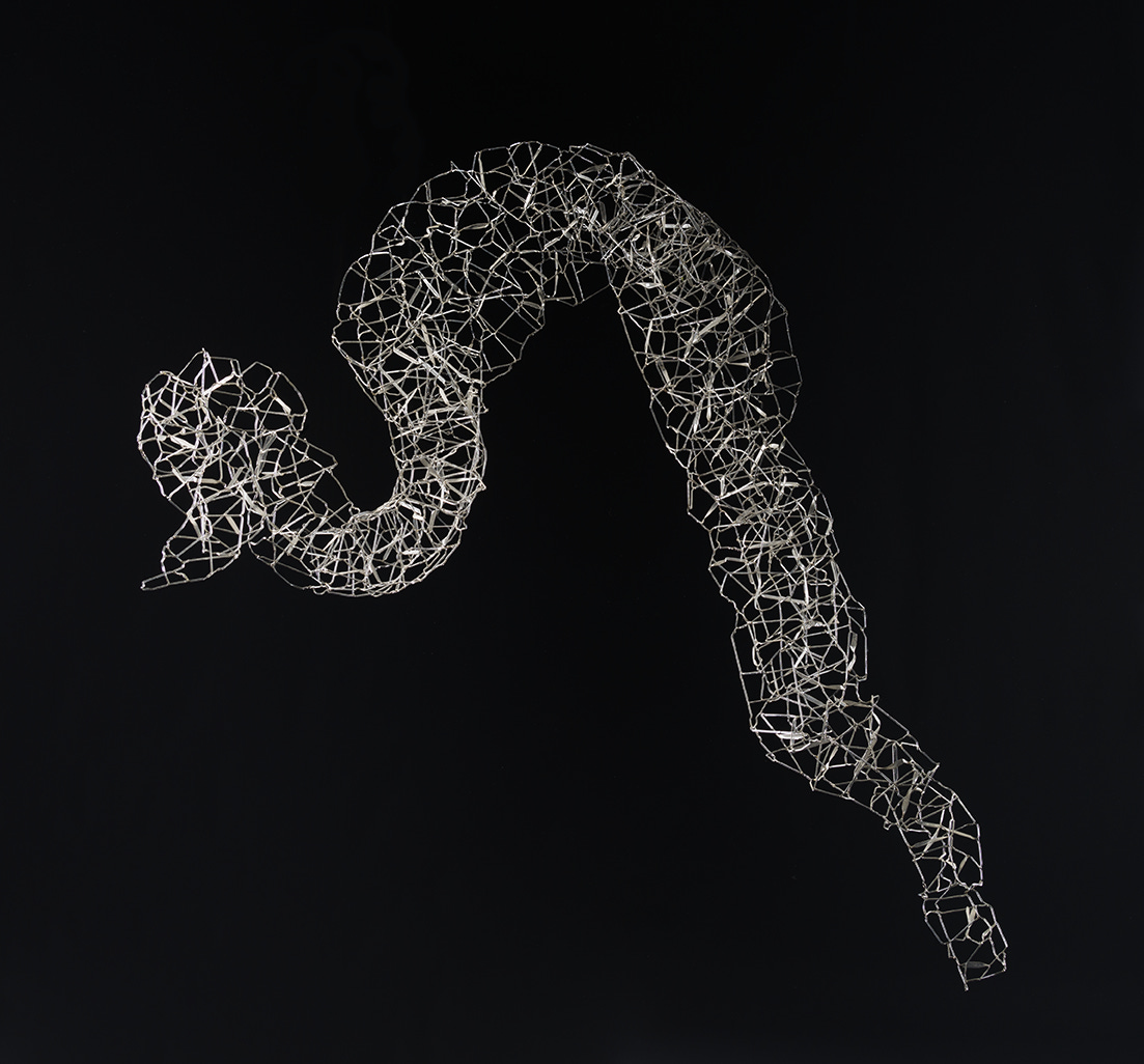 The word means “dragon” in her native Polish, and the sinuous bits of glass floating above you could indeed be the spine of such a beast, or smoke coming out of its nose. She invented the technique needed to make “Smok,” melting and fusing glass with a blowtorch to create lattices of thin glass rods that could be assembled into a large sculpture.