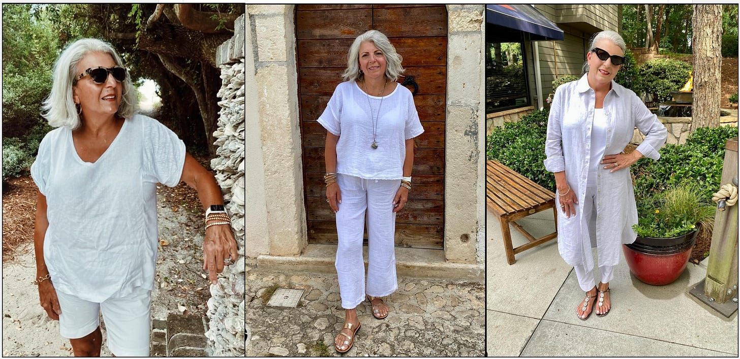 I don’t wear a lot of long things like a lot of Coastal Grandmas will do, but I wear a lot of linen, and I do wear a lot of white. In fact, I looked at my posts last week on Instagram and everything is white or a light shade.