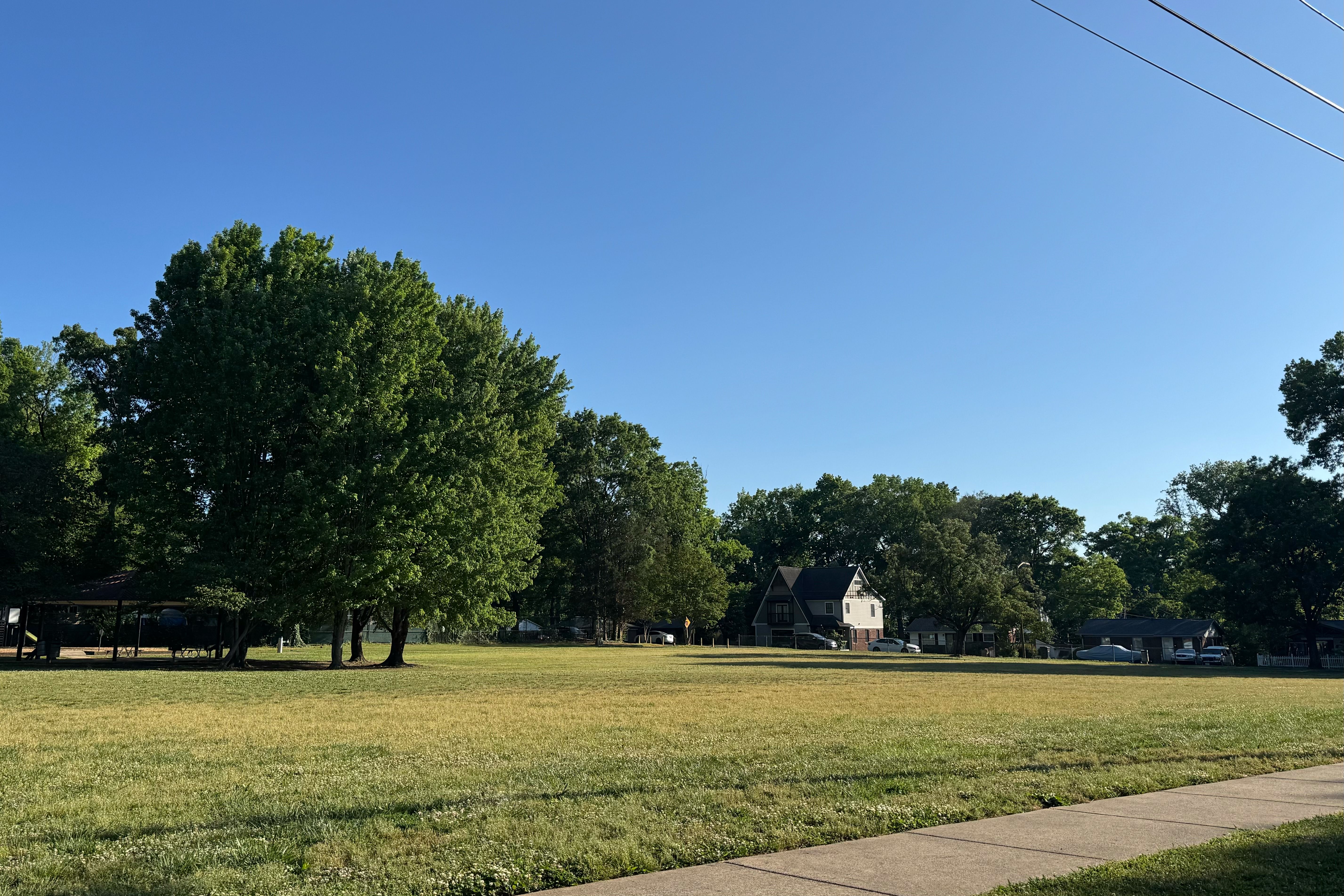 The grass was yellow and dry on Sunday at North Charlotte Neighborhood Park in NoDa. The field will need more than one rain to restore the green after the drought. (Photo: Lindsey Banks/The Charlotte Ledger)