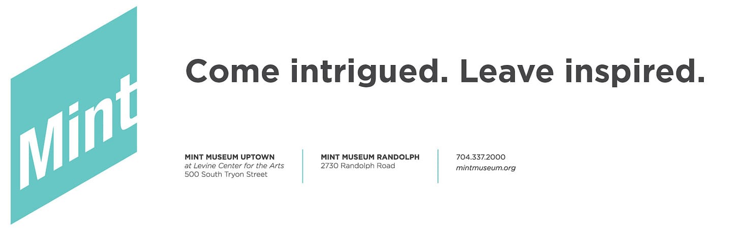 Today's Charlotte Ledger is sponsored by The Mint Museum, which is making art history fascinating and fun with ART 101: A Global Adventure. The survey course delves into art history with cultural investigations and unusual, intellectual twists. The fall 2022 session begins August 30 at The Mint Museum. Details.