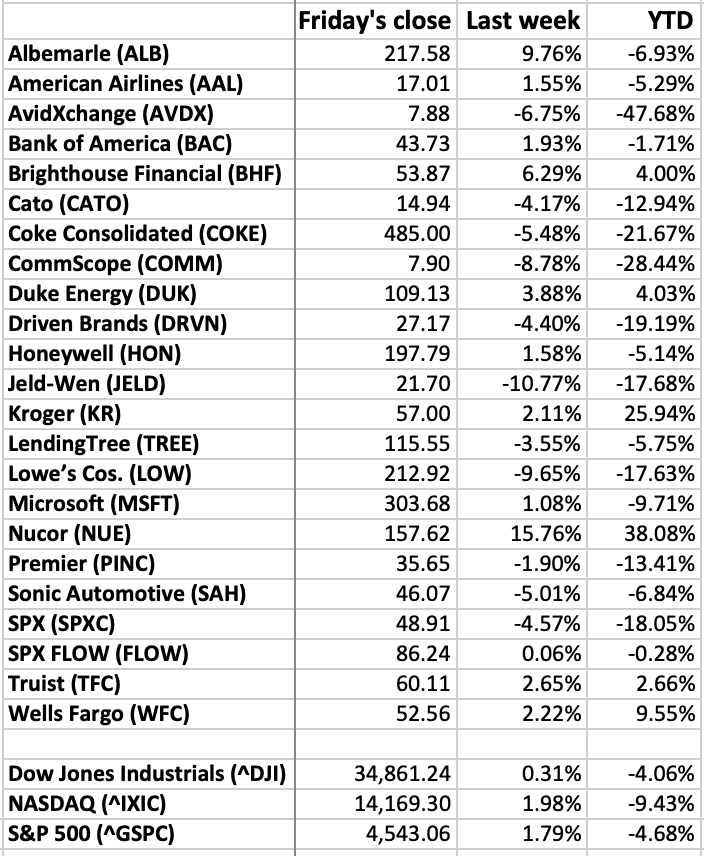 Unless you are a day trader, checking your stocks daily is unhealthy. So how about weekly? How local stocks of note fared last week (through Friday’s close), and year to date: